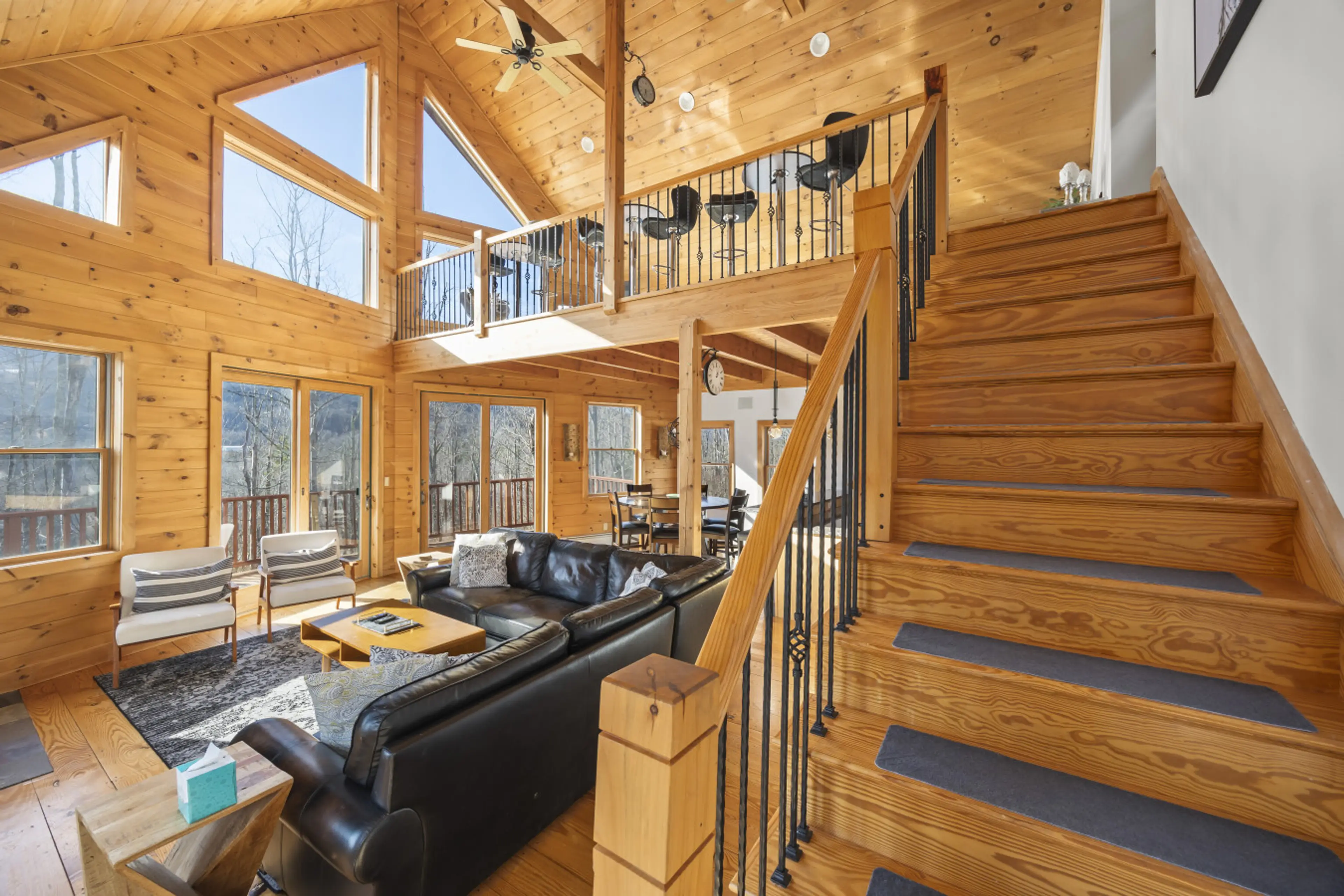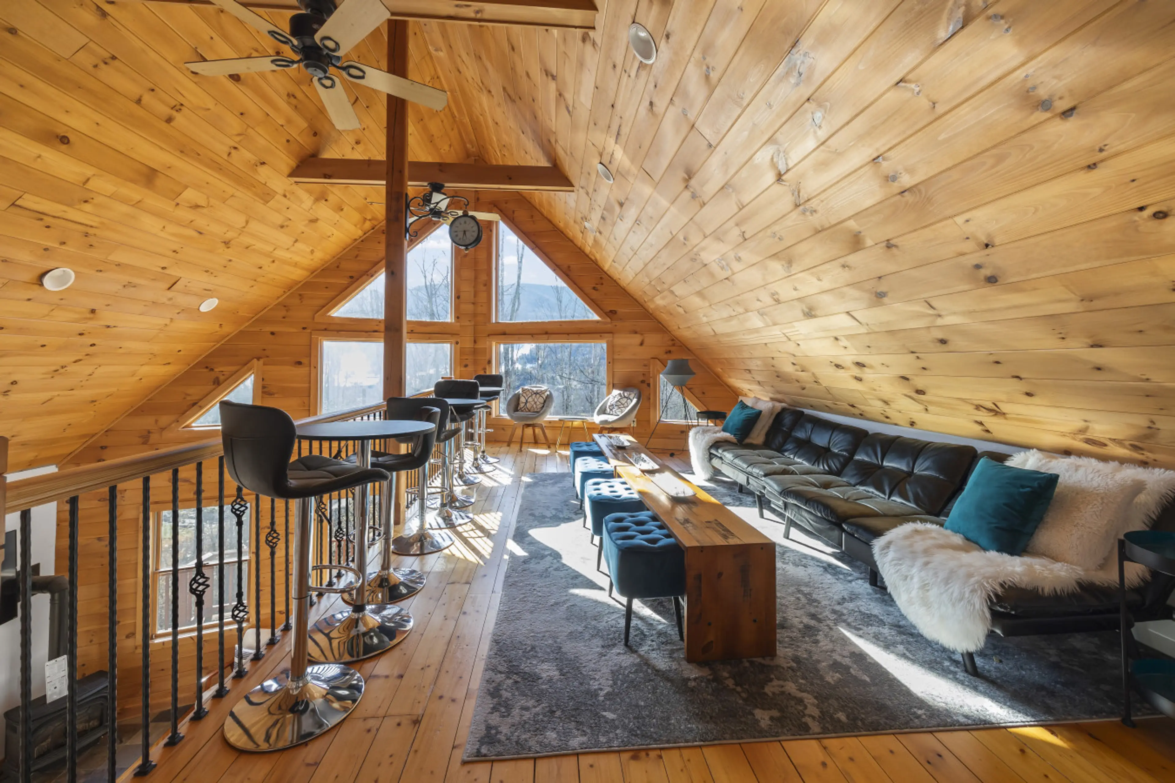 Our home is a spacious, chalet style cabin outfitted with comfortable beds, tons of common area space, is near everything you’re coming to Hunter to enjoy. Two of our bedrooms have side by side queen beds and the other has a king bed. There are three full baths, all with showers. The basement game r...